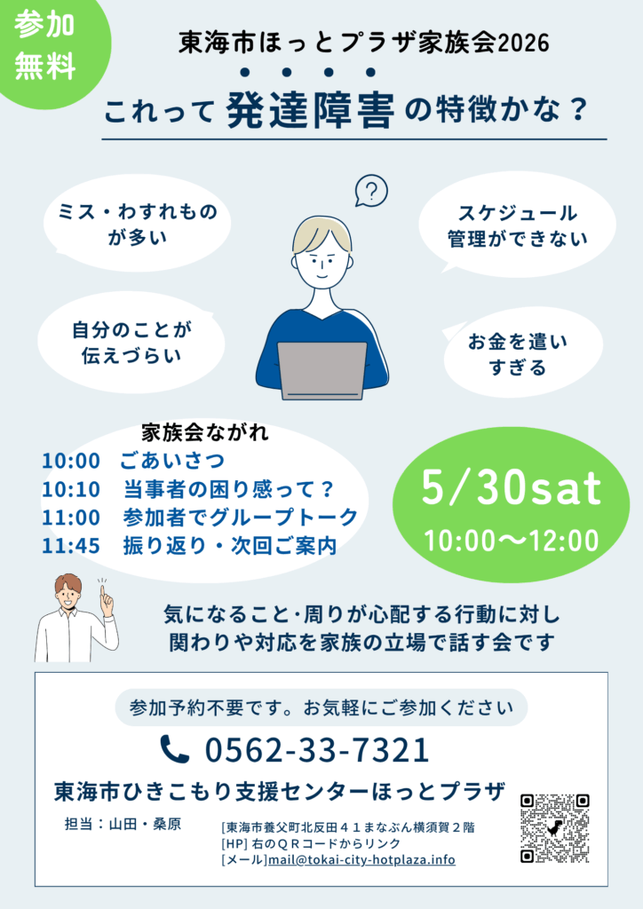 2026年5月30日(土)東海市ほっとプラザ家族会ご案内